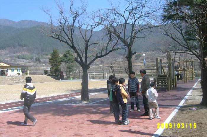 일부 주일학생들이 중식 후 오후예배를 시작하기 전에 교회당 뒤 하동학생야영수련원에서 놀이를 하고 있다.