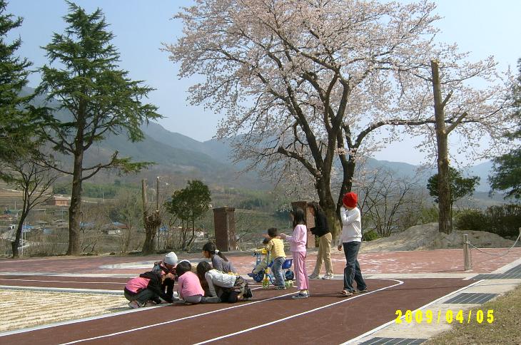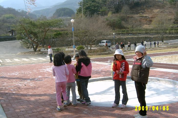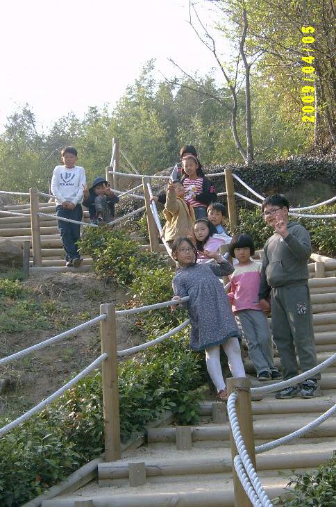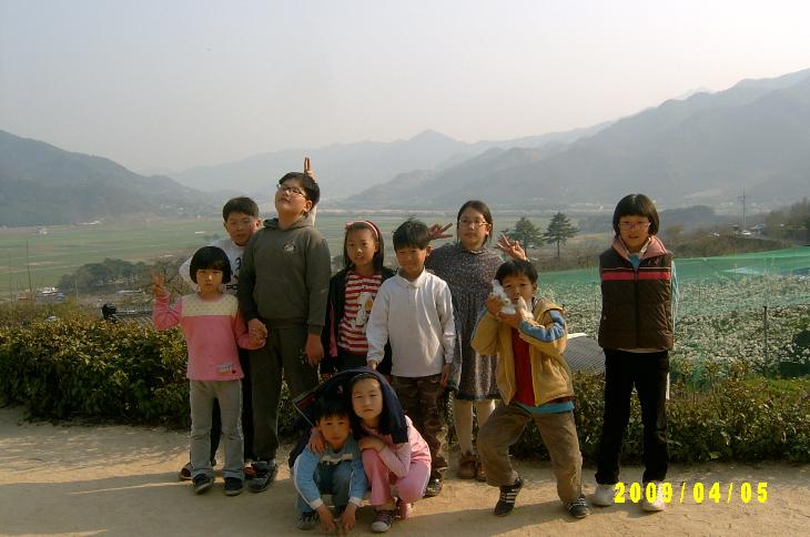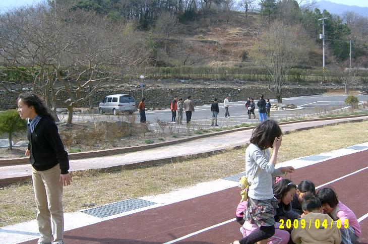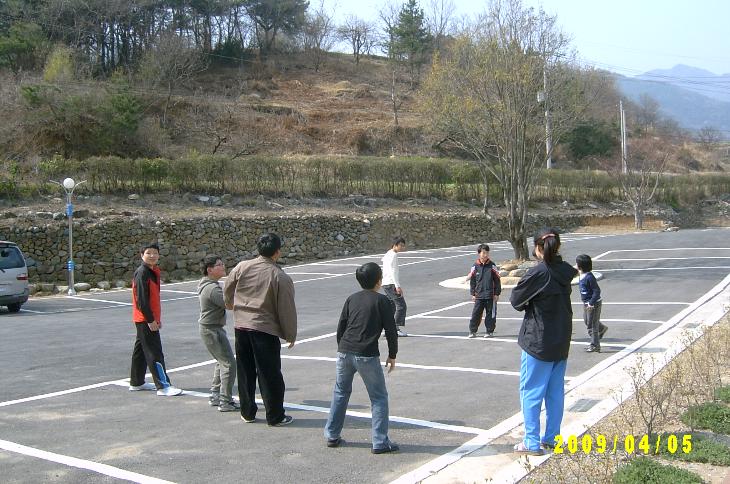 1) 오후예배를 마친 후, 일부 주일학생들은 (바빠서) 가고 남은 자들이 족구를 하고 있다.
