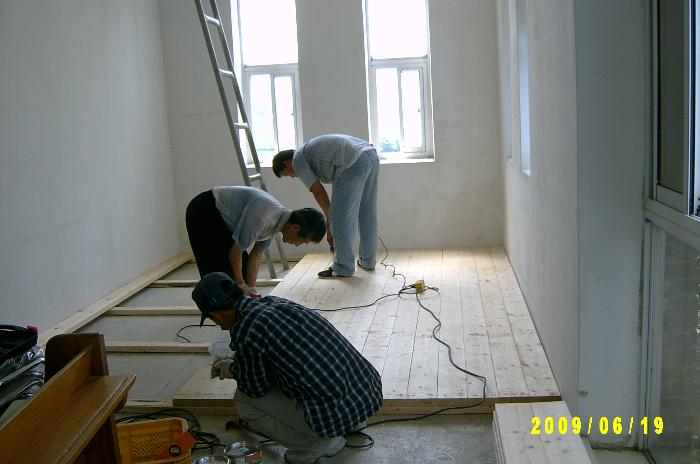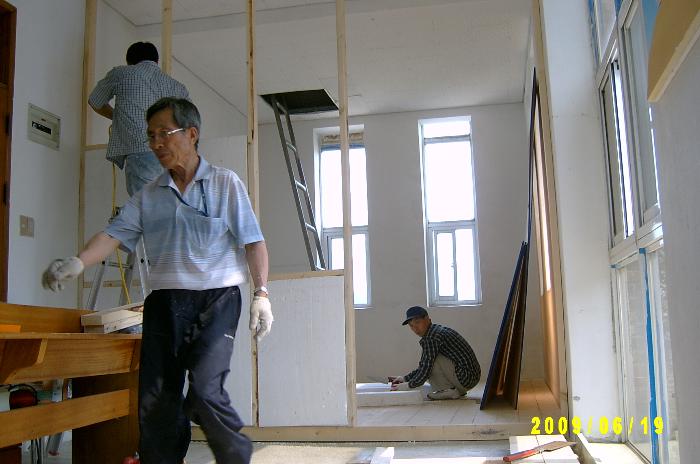 이종찬 집사님이 목수로, 박종진 집사님과 이준호 씨가 도우미로 나서다