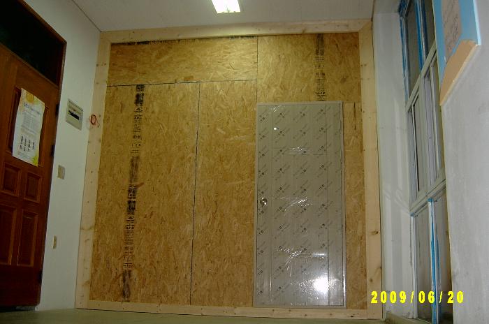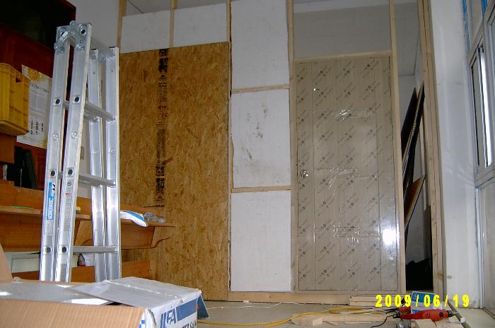 스타이러폼을 끼우고 널판지를 대다