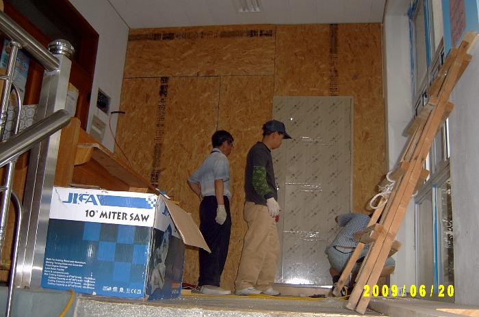 3층의 누수현상 수리(문을 바꾸어 달다)