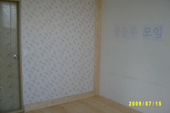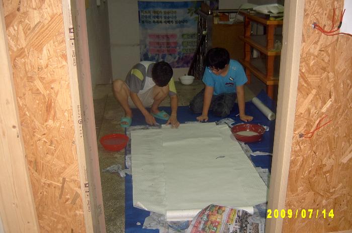 벽지를 바르기 위해 이준호 씨와 이찬규가 봉사하다