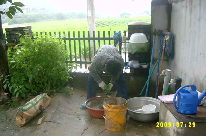 3층의 누수현상 수리(시멘트 턱을 만들다)